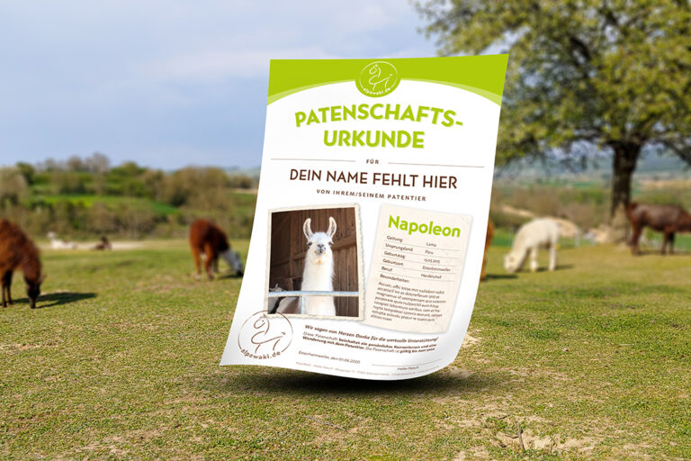 Werde Alpaka-Pate… oder verschenke eine Patenschaft! Lorem ipsum dolor sit amet, consectetur adipiscing elit. Praesent consequat nibh elit, et scelerisque…
