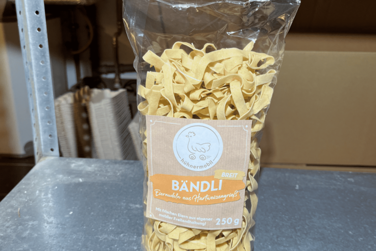 „Schon probiert?“Unsere Nudeln mit eigenen Eiern aus unseren Mobilställen. test test test